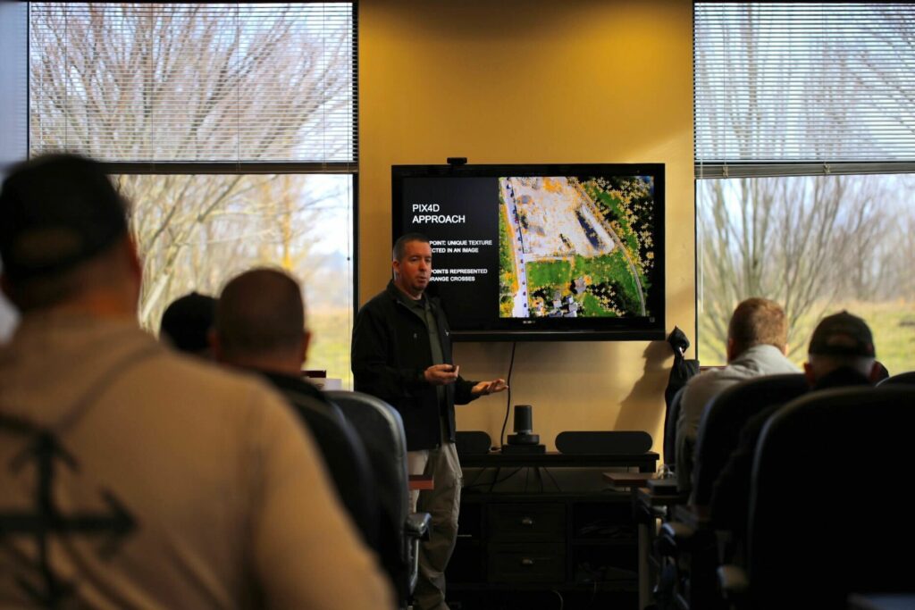 Pix4D and DJI Terra were two of the primary tools used during the class. These software programs enable the user to create 3D models and orthomosaics from aerial imagery. Doug demonstrated how the software can be used to capture and process data from a crash site, making it easier for investigators to analyze the site from different perspectives.