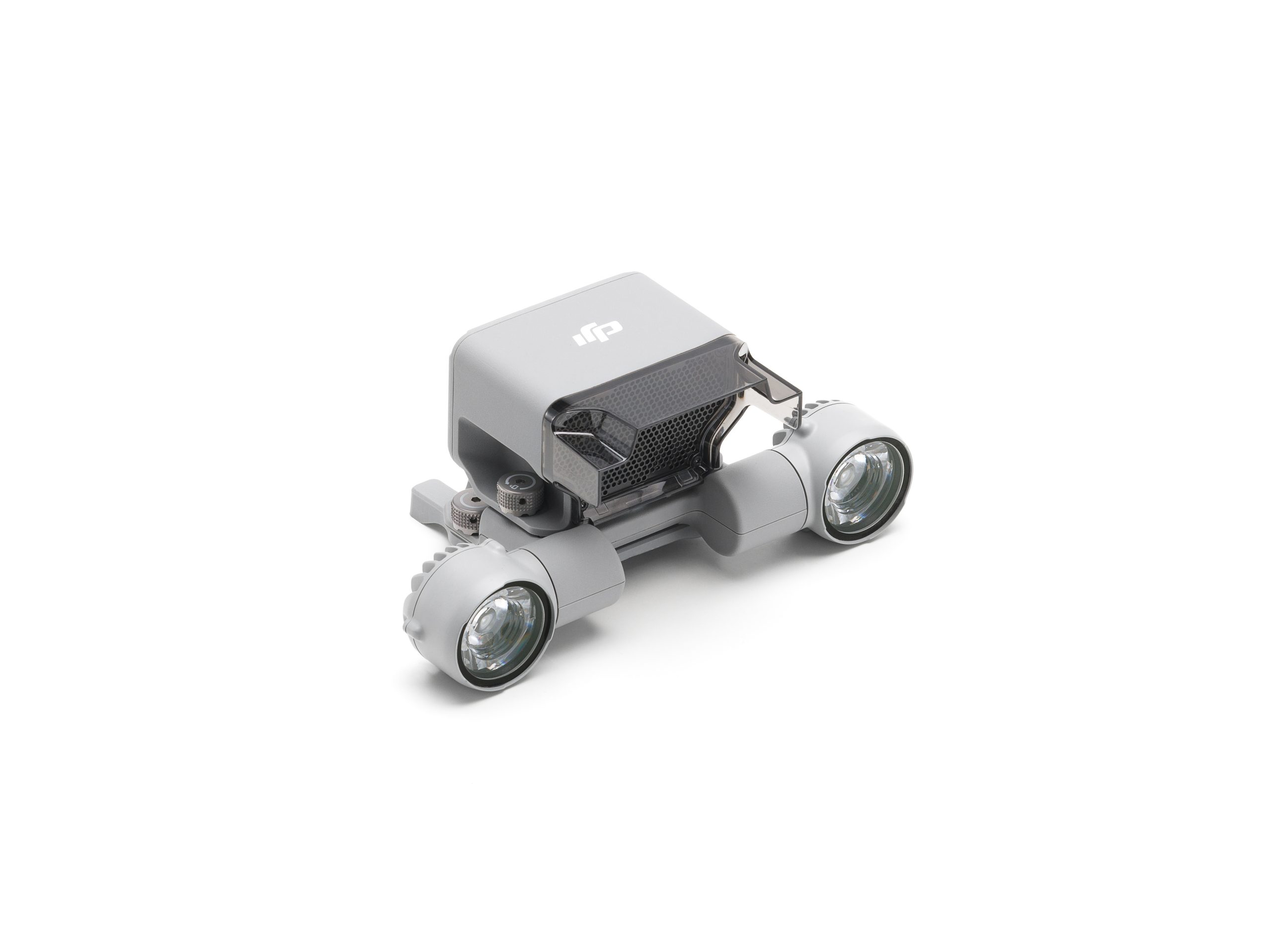 The DJI AL1 Spotlight features two modes: always-on and strobe. It is capable of illuminating subjects clearly from up to 100 meters away. Additionally, it can smartly connect with the gimbal, tracking the camera’s movements to ensure the lit area aligns with the camera’s perspective. It also provides a wide field of view lighting mode, allowing for broader illumination when set to wide-angle. The spotlight and speaker can function separately or together, catering to various operational scenarios.