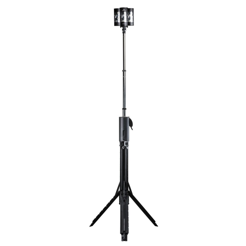 Many portable area lights only extend to 6 ft (1.8 m) tall, which is near the eye level and potentially blinding. The 360 extends up to 8 ft (2.4 m) tall to deliver overhead lighting that does not blind the user.