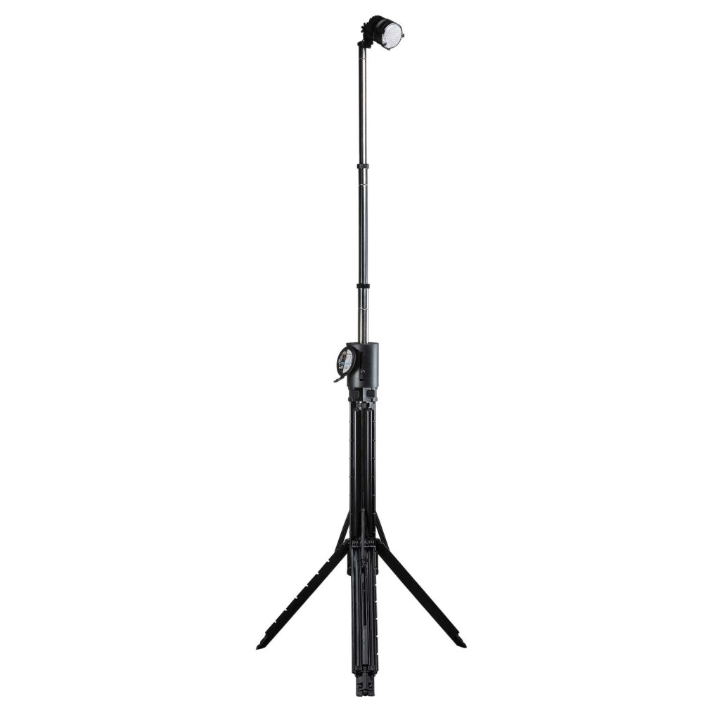 Many portable area lights only extend to 6ft (1.8 m) tall, which is near the eye level and potentially blinding. The Prime extends up to 8 ft (2.4 m) tall to deliver overhead lighting that does not blind the user.