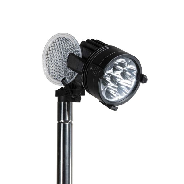 The portable Prime can be used as a shoulder-worn bazooka light that illuminates your path so that you can get where you need to go. The beam is capable of illuminating over 1 mile (1.6 km) ahead. Once you’ve reached your destination, you can deploy it as a tripod light.